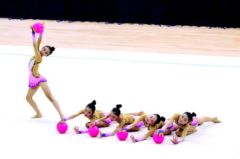这块金牌姑娘们付出了太多 济宁艺术体操摘得集体五球项目金牌