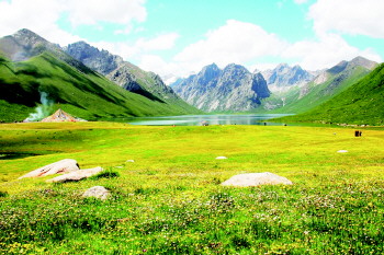 有“最后的香格里拉”之称的亚丁自然保护区,以代表三尊菩萨的三座神山而闻名藏区。三座高耸入云的雪山,呈品字形坐落在原始森林密布、沟溪蜿蜒的亚丁沟内。珍珠海、牛奶海等高山湖泊,在阳光下绽放出湛蓝的光芒。