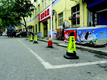 交警当即电话找到该停车场的负责人,指出其行为违反了《道路交通安全法》,要依法对所有私设的停车位予以取缔。交警随后取下了路边私设的停车牌,责令当事人限期整改,将人行道上的车位线铲除。为了提醒车主此处不能停车,交警还将在人行道上设置活动性禁停标牌。