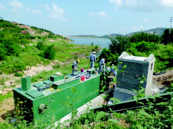 目前,该项目已经完成水库南岸5处污水处理设备的基础开挖工作,设备已经吊装到位,其中3处的配套污水收集管道已经铺设到位,其余两处正在施工。全部工程预计10月底完工。