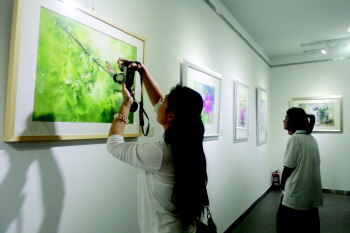 15日,第九届青岛·上海·仁川水彩画国际交流展在崂山美术馆开幕,中韩两国60余名杰出水彩艺术家共展出126幅水彩画佳作,吸引了不少艺术爱好者前来参观。