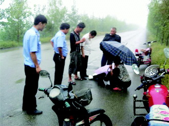 13日上午,峄城魏楼村附近一名女孩瘫坐在小雨中。原来女孩骑电动车上班,由于下雨地滑不慎摔倒,一度失去知觉,幸亏得到路过好心人照料。底阁中队社区警察到场后驱车将该女孩送至医院进行检查,女孩并无大碍。 本报通讯员 马刚 本报记者 袁鹏 摄影报道