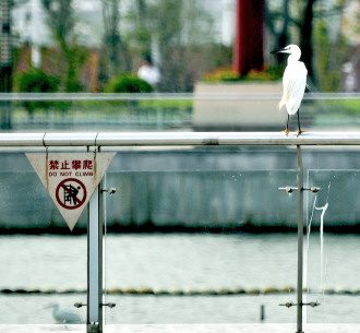时间:2014年8月22日 自述:“禁止攀爬”警示标志赫然挂在栏杆上,有个特殊的“监督员”一直在旁边“看护”。 点评:君子动口不动手。