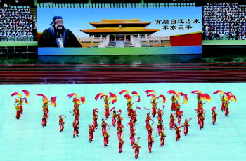 开幕式前,来自济宁供水集团、济宁市第一人民医院、任城老年体协等单位的群众演员及济宁演艺集团的专业演员纷纷登台表演,《济宁之歌》、《吉祥板》、《孔子说》等精彩节目引来全场欢呼,充分展现了文化济宁的好客之风与厚重的人文底蕴。