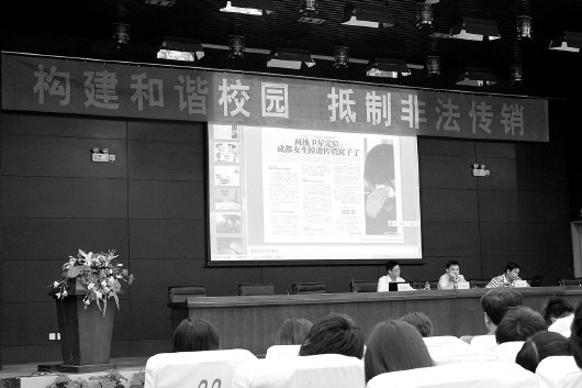 反传销人士蒋德胜等人在大学开展抵制传销的讲座。(资料片)