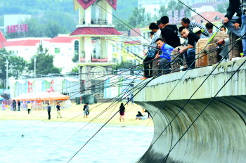 17日,滨海广场附近,密密麻麻的鱼竿垂在岸边。近日天气转凉,又到了钓鱼的好时节,钓友们纷纷带着渔具来到海边大显身手。