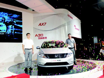 鲁东区销售督导栗文杰和烟台达盛昌4S店总经理于海光为A30揭幕。