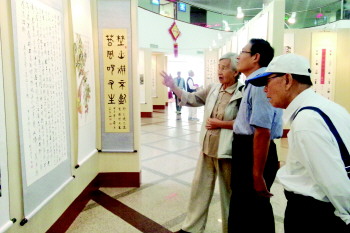 17日—19日, 青岛市老年书画展在青岛市级机关会议中心一楼大厅举行。据介绍,本次画展共征集各类书画作品1100余件,其中168件优秀作品入选“2014‘欢庆世园会 丹青颂祖国’青岛市老年书画展”。作品以歌颂新中国成立65年来取得的丰硕成果,展现家乡举办世园会自豪感与幸福感为主旨内容。