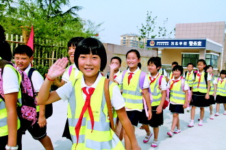 新学期后,“平安威海荧光童行”大型公益活动继续进行。近日,环翠区嵩山街道办事处给河北小学捐赠了600件“爱心荧光衣”。“平安威海荧光童行”活动由大众网与共青团威海市委、威海市文明办、威海市教育局、威海市公安局交警支队共同主办,大众网威海站承办。