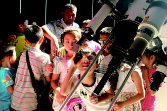 本报9月17日讯(记者 陈乃彰) 13日,60余名本报小记者在家长的陪同下,来到山大威海天文台,了解地球的公转和自转,用折射式望远镜观太阳黑子,尽情享受天文台带来的科普大餐。