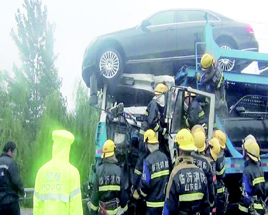 本报临沂9月18日讯(记者 高祥 通讯员 陈健 郑自武) 17日下午,京沪高速公路临沂罗庄段发生一起车辆追尾事故,一辆运输奔驰豪车的货车与另一辆货车发生严重追尾,所幸未造成人员伤亡。