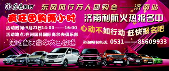 9月21日,等你来!辉煌六十载,钜惠千万礼——东风风行万人团购会将在齐河国际国科高尔夫举办。金九银十购车小高峰又来了,由济南利航风行汽车4S店主办,东风柳州汽车有限公司协办,各地东风风行经销商参与,共同开展此次大型区域团购会活动。东风风行万人团购会,火爆招募中,限时抢购,钜惠千万,您不用在茫茫车海中苦苦观望,也不用再三天两头货比三家。届时,参加活动即有好礼相送,订车即有机会获得iPad、双开门冰箱,更有万元大礼包等你拿。还在等什么,详询济南利航风行4S店,85609933。买风行,到利航!利航为您提供买车上牌一站式服务!