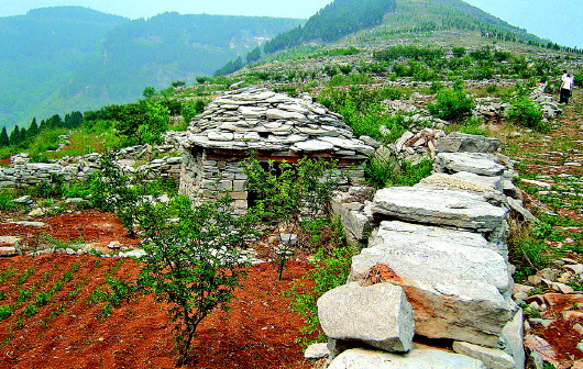 走进山村,就好像走进了一座石头作品的博物馆。高耸壁立的石堰、石台,弯曲跌宕的石巷、石道,还有石碾、石磨、石槽、石臼、石缸、石井口……就自不必说了。单是那一座座令建筑师们也为之惊叹的石屋,就可以写一部书或出版一册厚厚的影集了。尤其是那些上了岁数的石屋,就更吸引外来人的眼球了。这些石屋除了屋顶是用草披的,门扇窗棂是木制的,墙体、屋檐、山墙的锥尖都是就地取材的自然石块、石板稍微加工垒筑搭叠起来的。无需用任何粘合剂的石块与石块、石板与石板结合之巧妙,无论是在力学上,还是在美学上,都显示着山区一代又一代人的聪明、智慧与创意。