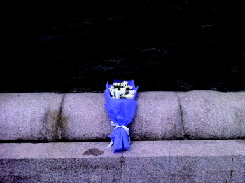 记者上前敬献一束白菊。