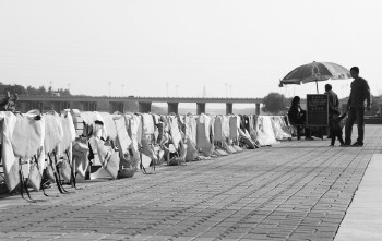 9月18日,市区终于迎来晴好天气,锦绣川风景区内的游船商主抓紧晾晒救生衣具。