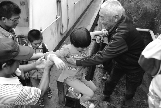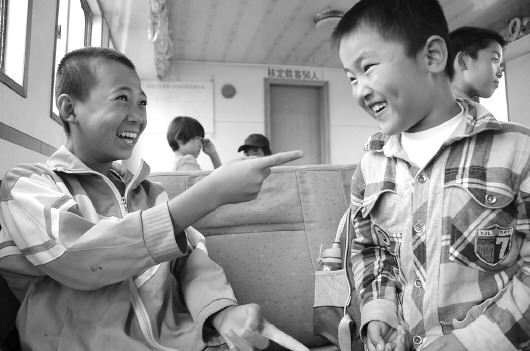 18日下午4点50分,孩子们又放学了,老人早已在码头等候,孩子们站好队,老人用那个吃力却很熟练的姿势,挨个将孩子们抱上船。“谢谢爷爷……”老人点点头,嘴角绽出一丝微笑。