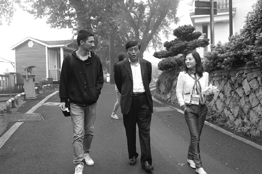 9月18日,著名经济学者常修泽和年轻人在一起交谈。