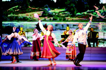 20日晚,在李沧剧院,来自青岛友好合作关系城市俄罗斯彼尔姆市的雅尔马尔卡民族歌舞团的演员们正在表演开场歌舞《卡马河畔》。本次在青开展文化交流,雅尔马尔卡民族歌舞团将分别在李沧剧院、青岛世园会和黄岛会议中心礼堂举行5场文艺演出。