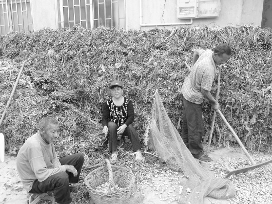 王秀芹一家在摘花生。 本报记者 宋祖锋 摄