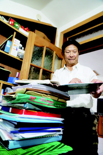 金可意老人是个很细致的人,细致到有点较真。多年来上诉路上的车票,老人积攒了一万多张,包括一块钱的公交车票据,都被老人仔细装订起来,一摞一摞小心放好。上诉以来,老人仅收集及整理各种资料,摞起来就有一米多高,屋子里没地儿放了,就专门放到小棚里。