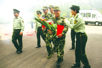 近日,德州市武警支队的四名参加年度参谋业务比武竞赛的官兵,最终在19支队伍中一举夺魁。9月23日,德州武警支队为他们举行了迎接仪式。 本报记者 王小会 摄