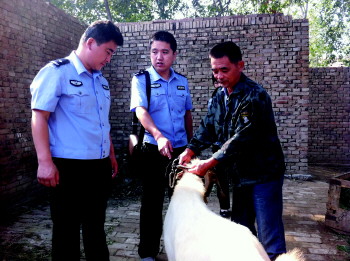 失主在指认丢失的羊。 李光明 摄