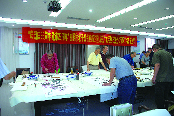 本报9月23日讯(记者 赵发宁 通讯员 杜杰) 23日上午,在山东广电网络日照分公司三楼会议室,来自日照市老年书画研究会、市老干部摄影协会12位老年书法家伏案挥毫泼墨,庆祝建国65周年、建市25周年。