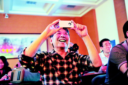 作品讲评环节大家认真听,还把讲课内容拍下来。本报记者 徐延春 摄