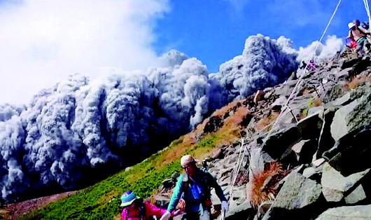 ◤27日中午,日本御岳山突然喷发,山上游客措手不及,匆忙下山躲避。