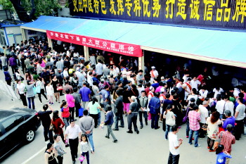 记者在现场看到,8时30分,排队的人已有上千人,而且陆续有市民赶到现场。在张店区中医院工作人员的指引下,这些市民根据病情和要找的专家,有秩序的领取号码牌,并且排成十几条队伍,等待名医的到来。
