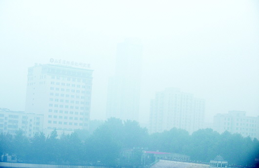 28日,济南飘起了小雨,空气湿度较大,还延续了前一日的雾霾。整个城市笼罩在一片灰蒙蒙之中,能见度较低。在泉城广场,市民赵女士抱怨,9月份本该是秋高气爽、蓝天白云的好天气,怎么雾霾提前了,还“气势汹汹”。