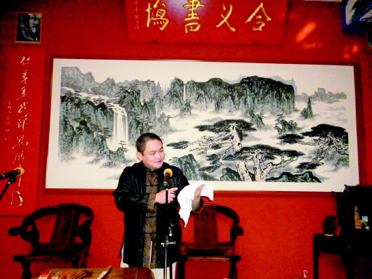 今年46岁的他为省非物质文化遗产传承人,并且还是日本早稻田大学的博士,回国工作多年后,他却选择办起了合义书场。他就是马骏,为已故著名曲艺家马合义的孙子。为了将书场坚持下去,马骏每年要拿出近80万元来补贴书场演出和发展。虽然亏损巨大,但他每年还坚持多场免费演出。今年国庆期间,市民可到位于东工商河路的药王楼合义书场欣赏免费评书。