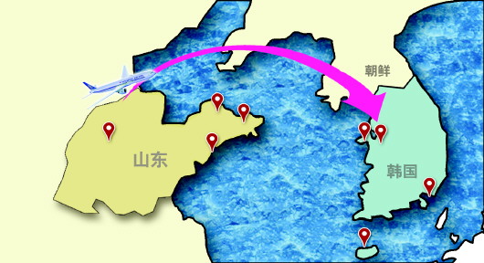 山东的航空市场从未被韩国忽视。2012年3月,韩国廉价航空釜山航空率先开通釜山-青岛航线,每天往返一次。2012年6月,济州航空首次开通中国大陆航线仁川-青岛航线,每周往返飞行7次。2014年4月,德威航空首次在中国开通正班直达航线仁川-济南航线,成为继大韩航空、易斯达航空(包机)之外,韩国第三家开通济南航线的航空公司。今年5月,韩亚航空开通济南到首尔定期航线,每周2班,是继青岛、烟台、威海开航后,韩亚航空开通的山东省内第四条航线。