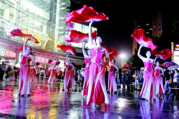 参赛队在雨中跳得精神头十足,当晚的表演队对雨也是丝毫不怵。奇山办事处长生蓝天模特队为观众们带来了走秀节目《走天涯》,队伍中年纪最大的已经年过七旬,获得观众热烈掌声。拉丁舞团体的小朋友们一支火爆的拉丁舞表演《红色风暴》,给稍显凉意的夜晚带来火的暖意。在2014烟台最强音和烟台好声音中获奖的歌手林涛,为大家献唱两首感恩父母的歌曲,博得满堂彩。