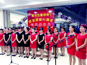 为庆祝祖国65岁华诞,振华五星百货于9月28日在商场一楼开展《颂歌献祖国》歌唱比赛,员工精神抖擞,歌声慷慨激昂,彰显爱国热情。自2011年振华五星百货全面提升改造以来,以崭新的形象、优良的品牌组合和先进的服务理念呈现在聊城广大消费者的面前。无论是经营业绩,还是服务理念,振华五星百货都已走在聊城同行业的前头。在不断创新升级中,五星百货改变着人们的生活,提升着水城的品味。