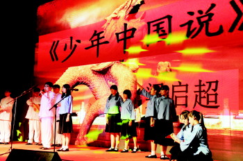 26日晚,在青岛十五中,学生们正在朗诵《少年中国说》、《祖国,我用青春的名义为你歌唱》等经典爱国诗文。通过丰富多彩的诵读演出,增强学生传承民族文化、弘扬民族精神的自觉性,也丰富学校周边社区老年人的精神文化生活,营造了校园、社区敬老、亲老、爱老、助老的社会风尚和良好的教育发展氛围。