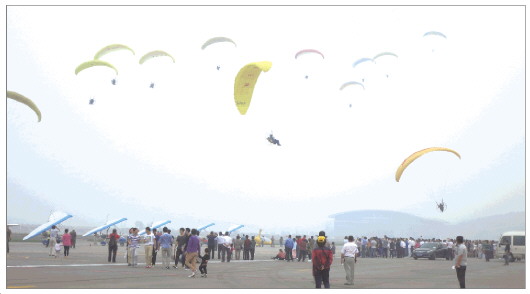 来自全国各地的近30名动力伞优秀选手参加了环雪野湖飞行表演和比赛活动,游客和航空运动爱好者还进行体验飞行。2014雪野湖航空嘉年华将开展一系列活动,其中包括,国家电网输电线路智能无人机展、技术比武及论坛,动力三角翼国家队集训表演,中俄飞行学院直升机培训雪野湖开飞仪式等,另外,航空嘉年华期间还会开展热气球、动力伞、三角翼、直升机等航空体验飞行等旅游活动,该活动将延续到国庆黄金周期间。