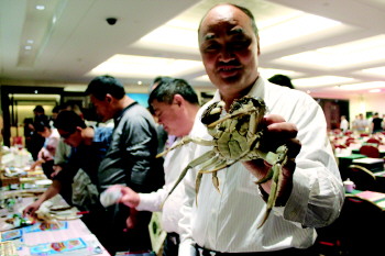 ◤西北客商对微山湖大闸蟹很感兴趣。