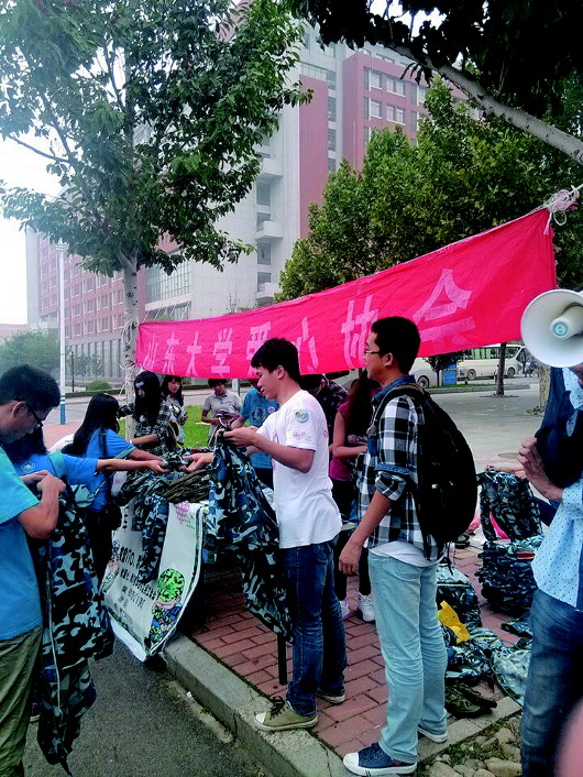 随着山大2014级本科新生军训汇演接近尾声,各校区爱心协会的军训服回收活动也陆续拉开帷幕。