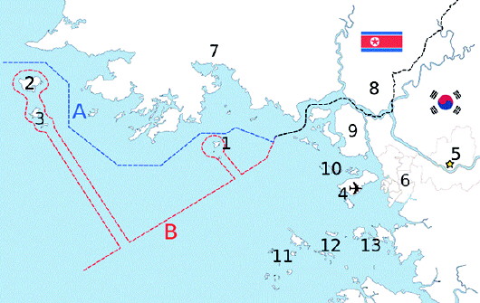 A线为韩美划设的“北方界线”,B线为朝鲜划定的海上军事分界线。