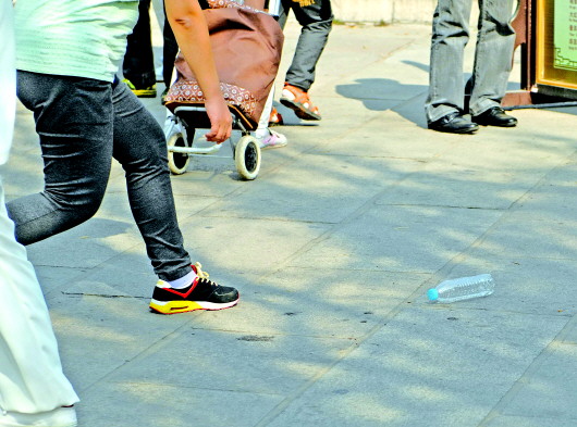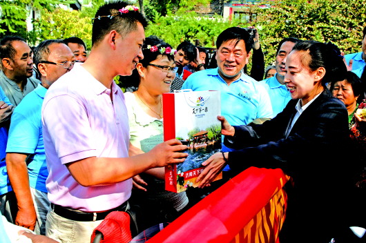 7日,大明湖北极阁广场,一个空瓶子在地上随风滚动,游客人来人往。突然,一位女游客弯腰捡起了这个瓶子,并放进了垃圾桶。立刻,十几个人鼓着掌将他们一家围了起来,祝贺她随意间的爱心行动完成了当日的“快闪环保”行动,着实吓了这位女游客一大跳。原来这是景区组织的一场环保测试,故意放置空瓶子测试游客的环保意识。在近五分钟的测试里,仅有这位女游客做到了,她和家人被景区工作人员戴上花环,并获赠一套礼物。 本报记者 周青先 摄