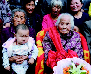 梁山县老龄办有关负责人介绍,老人生于1913年农历九月初九。目前,老人有9个孩子,有5个女儿和4个儿子,最大的儿子84岁,4个儿子全都参军。一家共有120多口,五世同堂,其最小的玄孙女刚1岁零4个月,是一个幸福美满的大家庭。