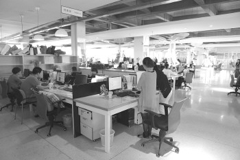 电商建设很复杂,不是开个网店那么简单,比如舒朗电商事业部,就有15个部门。 本报记者 秦雪丽 摄
