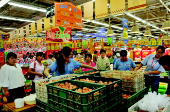 张店华光路一家大型超市内鸡蛋价格已经有所回落。 本报记者 王鸿哲 摄