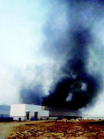 本报热线6610123消息(记者 张倩倩) 7日下午4点40分,开发区天津北路的烟台隆达树脂有限公司发生火灾,现场黑烟滚滚,火势吓人。