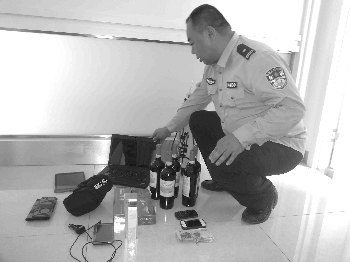 民警展示犯罪嫌疑人盗窃的物品。 本报记者 侯艳艳 摄