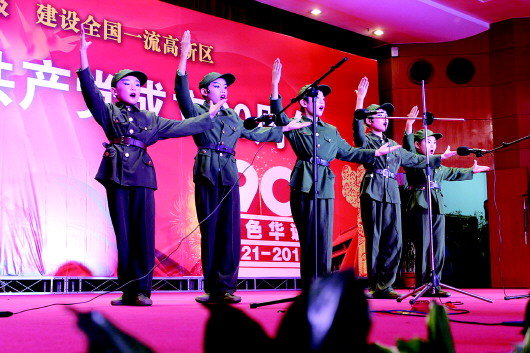 ◥2011年春晖小学参加高新区建党90周年演唱《我们是工农子弟兵》。