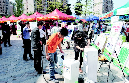 9月20日一大早,名士豪庭一区15号楼的刘钊老两口就抱着饮水机赶到了读者节现场享受免费清洗服务。泡、洗、蒸,臭氧吸毒……一系列流程下来整整花了一个小时的时间。刘钊说,家里人都知道饮水机用久了不卫生,以前饮水机都是一年一换,“以后不用年年买了,节省还环保。”