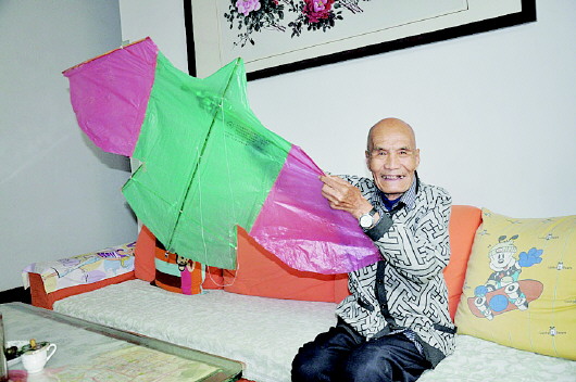 每天午后,李兆祥还会睡上1小时,然后下午3点多出门放风筝。老人喜欢自己扎制风筝,看着飞得高高的风筝,心情特别舒畅高兴。