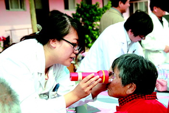 医生专家们为老年人义诊。 本报记者 李凤仪 摄